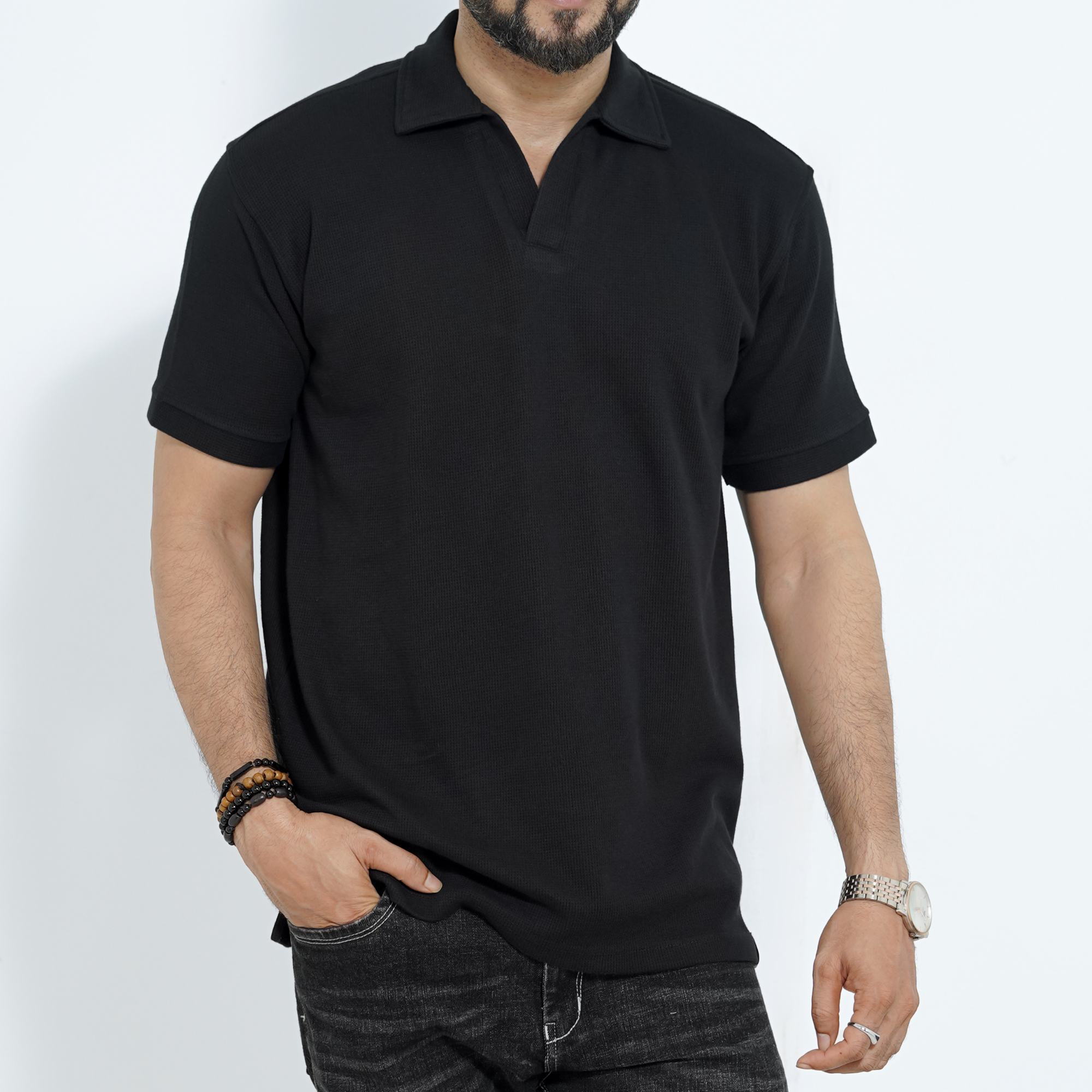 Be the first to review “Vintage Black – Open Collar Waffle Polo Shirt”